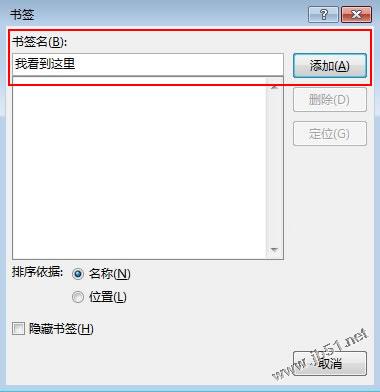 ②弹出书签对话框,输入书签名称,添加。这样,我们就插入了一个书签。