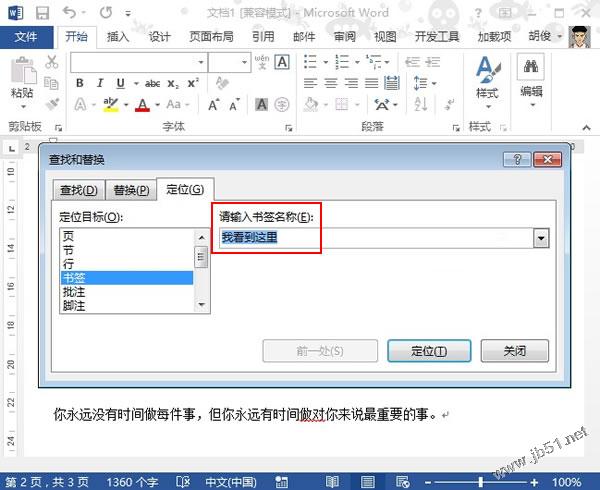 ⑥单击定位按钮即可快速定位到之前插入书签的位置了。