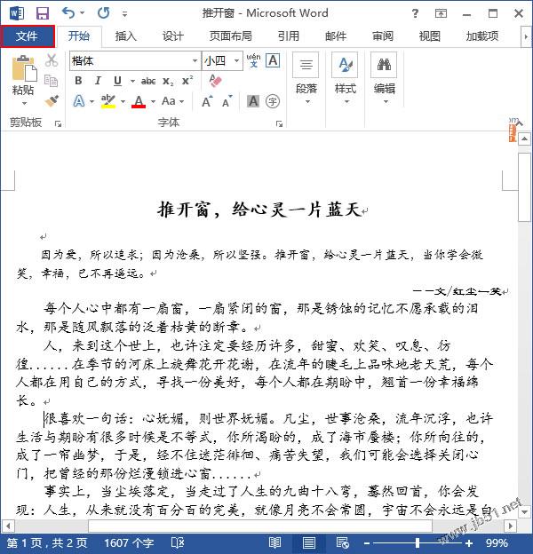 1、用Word2013打开一篇文档,单击文档左上角的“文件”按钮,并在弹出的“文件”菜单中选择“选项”。