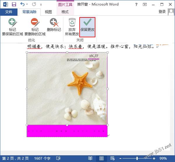 3、选好我们保留背景的图片区域后,单击“关闭”组中的“保留更改”按钮。