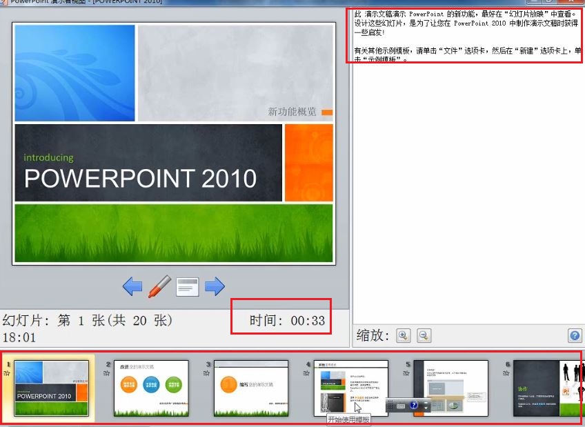 6. 选择完成以后按 F5 放映,可以看到进入了演示者视图,除了可以看到幻灯片之外还可以看到当前的备注信息和计时信息,除此之外还可以看到下一张的幻灯片内容以便我们提前做好准备,而在大屏幕上只会显示幻灯片的内容。