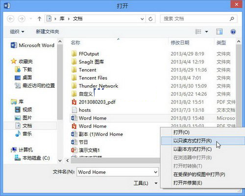 Word Home提示:在只读模式下打开的Word2013文档允许用户进行“另存为”操作,从而将当前打开的只读方式Word文档另存为一份全新的可以编辑的Word文档。