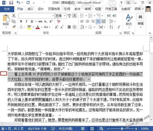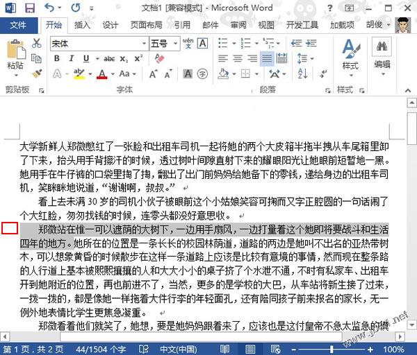 在Word2013中,我们可以单击下图红色方框标记处,即可快速选中改行内容。
