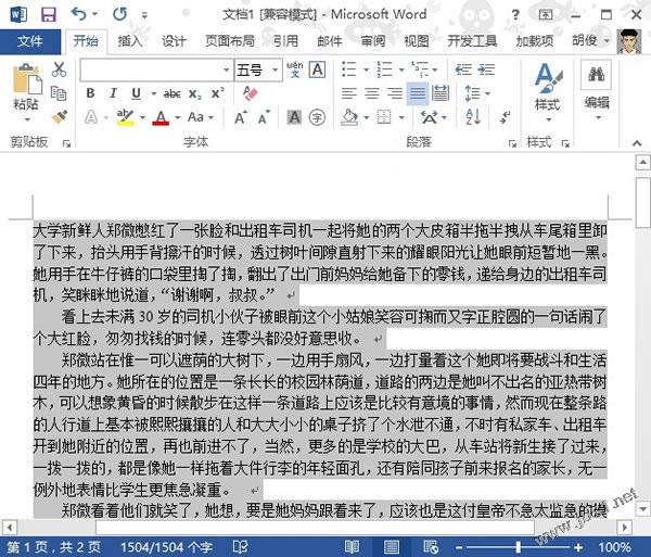 选中全文的方法相信大家基本都知道,按下Ctrl+A键,全选就是了。