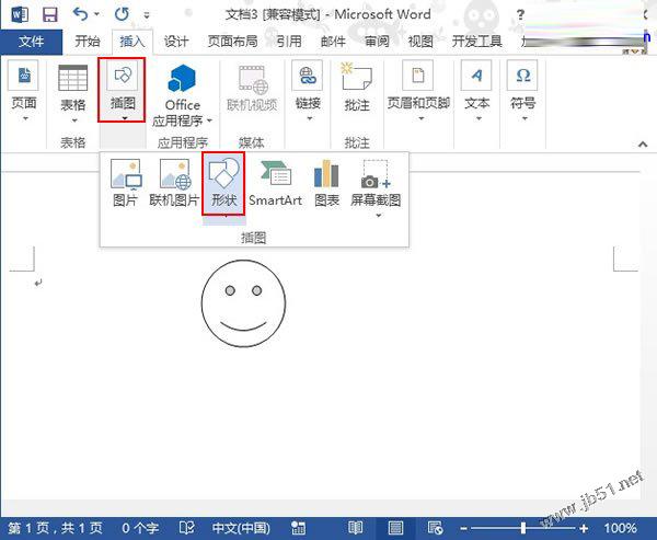 ①我们启动Word2013,单击菜单栏--插入--图形,选择一种图形插入。