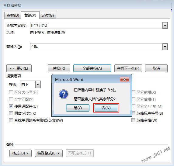 ④单击全部替换按钮,弹出下面的对话框,我们选择否。