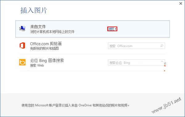 3、此刻会弹出一个“插入图片”的对话框,我们单击“来自文件”右侧的“浏览”按钮。