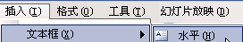 1)点菜单“插入- 文本框-水平”命令,鼠标的指针变成一个竖线|;
