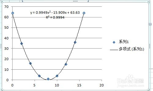 在这里可以选择需要你和的曲线类型,如线性,指数,幂,对数,多项式。。选择多项式。