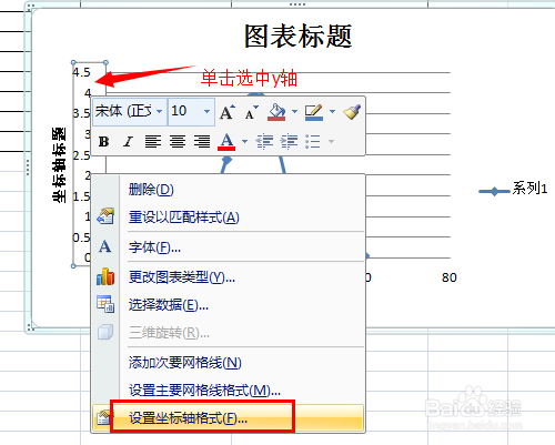 坐标轴还需要设置:用鼠标点击坐标轴附近的区域,右键,选择“设置坐标轴格式”。