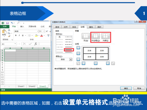 选中需要的表格区域,如图,右击设置单元格格式,选择外边框,内部。