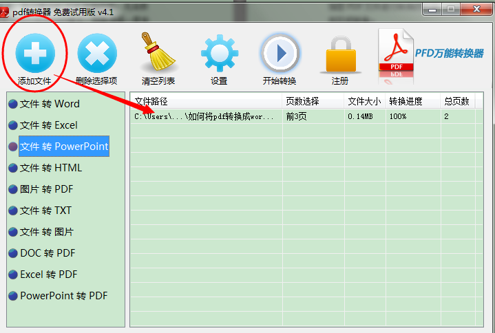 第三步,点击“添加文件”,将准备好的PDF文档上传到面板,目前PDF转PPT转换器可支持多个PDF文件转换;
