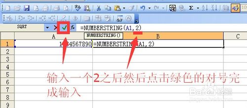 输入一个2之后然后点击绿色的对号完成输入
