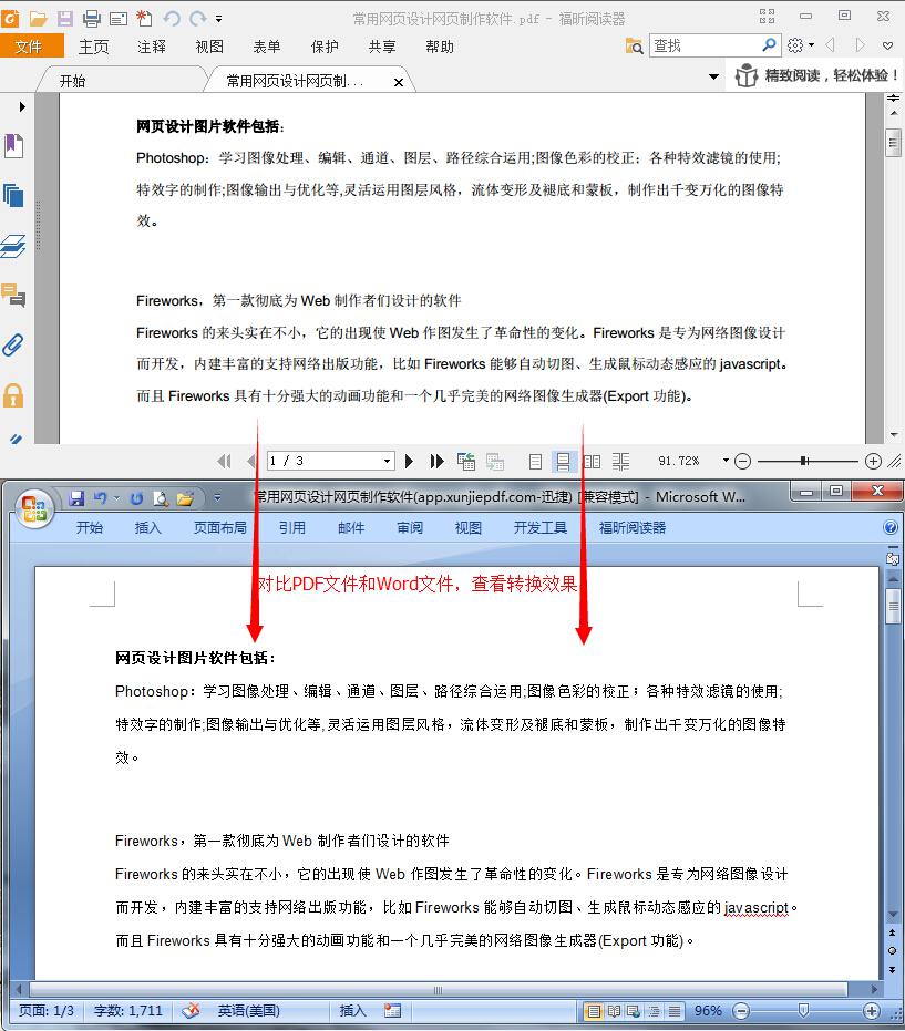 五、对比PDF文件和转换的Word文件,查看转换效果。