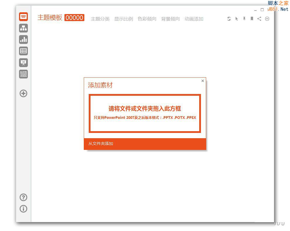 点击软件左侧的【+】号,就可将选择的PPT素材拖入到橙色方框内,完成素材的添加。