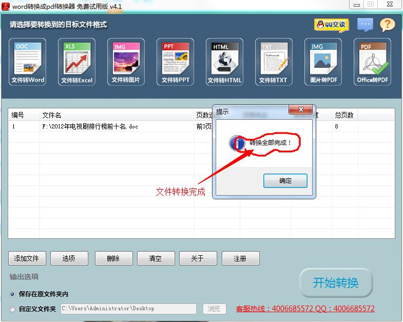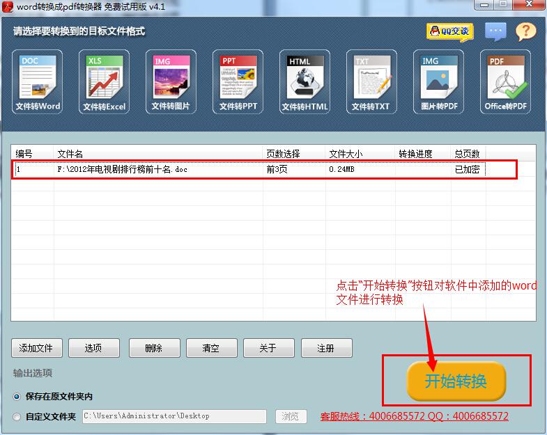 第四步:点击“开始转换”按钮对添加的word文件进行转换。如果文件不大,转换片刻即可完成。