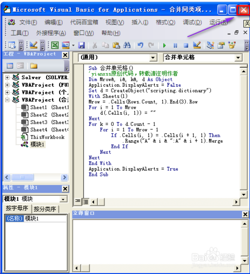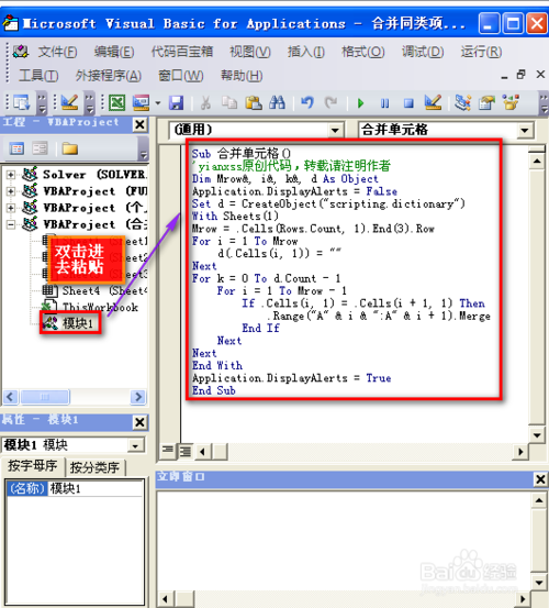模块插好后,双击模块,粘贴如下代码: