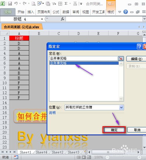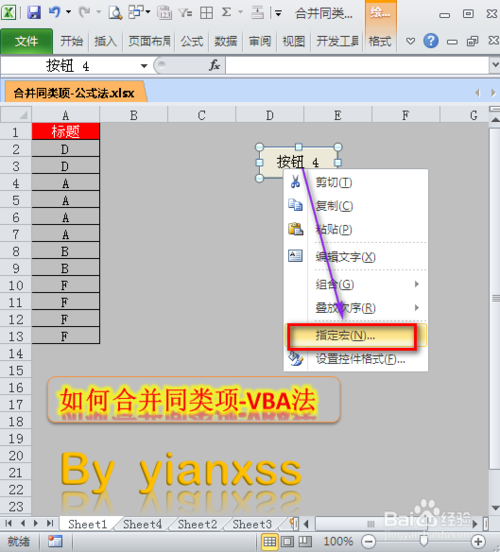右击新建的按钮,选择指定宏,选择我们合并单元格,即我们刚刚写的代码,然后点击确定完成。