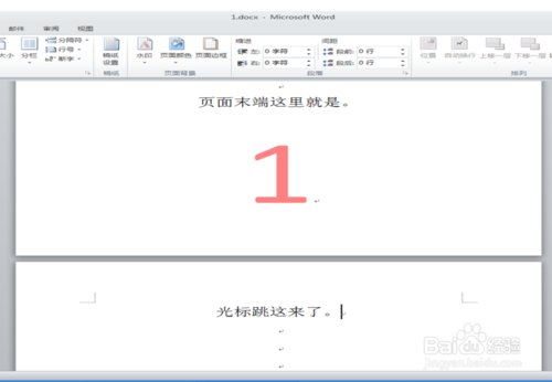 2、将鼠标光标移动到第一页末端。
