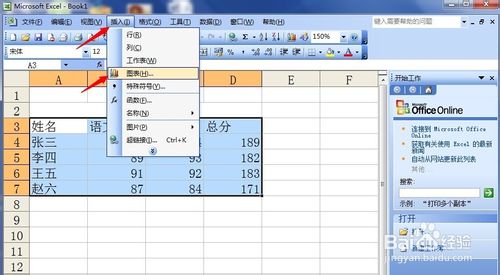 4、点击上面菜单栏中的“插入”——“图表”,如图所示。