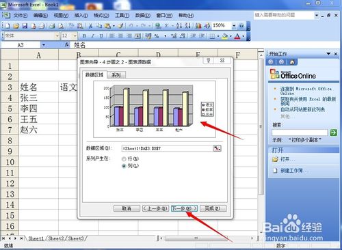 6、你想要的图表的基本形状在页面里已经能够预览,点击“下一步”,如图所示。