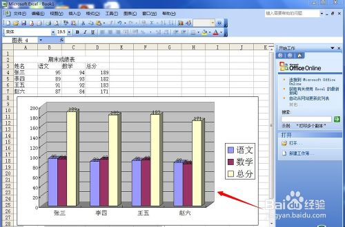 8、这样,你想要的柱状图就出现在了刚才的Excel表格中,表格、文字、背景等的大小都可以调整。如果想要把它放到Word里,可以整个复制、粘贴。非常方便。