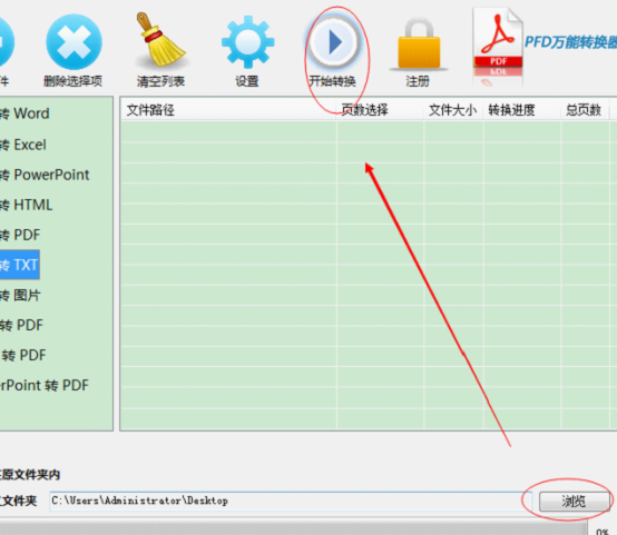 3、“输出选项”。PDF转TXT转换器默认将转换出来的文件保存在原文件夹内,或者自定义文件夹存储路径,最后点击右侧“开始转换”即可顺利完成转换。
