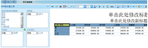 点开报表决策平台(op=fs)>B/S分析>员工信息表,给其添加新的数据分析,