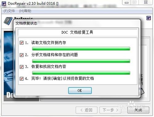 3、步骤3,开始修复损坏文件,结束后单击完成按钮。