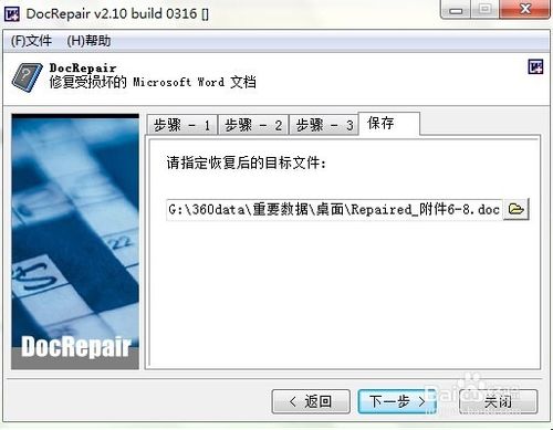 5、将修复后的文件保存到指定目录,文件修复完成。