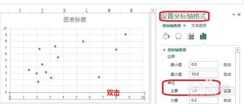 3.双击——设置坐标轴格式——单位(根据需要设置)。