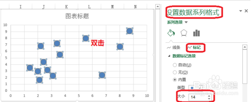 4.双击——设置数据系列格式——标记(调整数据标记选项的大小)。