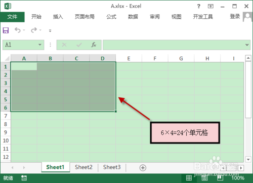 3、在每个工作表内,被网格线纵横隔开的就是单元格,如下图所示,总共选择了24个单元格。