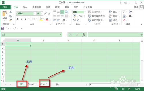 6、当然工作簿并非只单纯的包含工作表,它还可以包含图表和宏表等。如下图所示