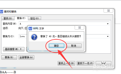 6、点击全部替换会弹出一个对话框,点击确定。