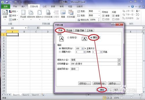 3、在页面设置对话框中点击“页面”,再勾选”纵向“或”横向“打印,最后点击”确定“。