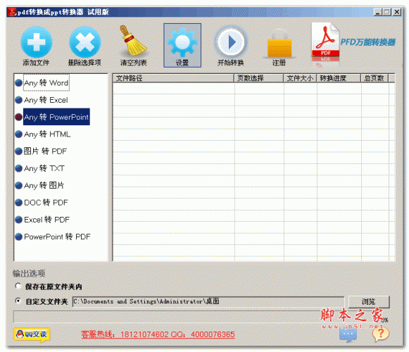 三 输出选项。PDF转换成PPT转换器默认将转换出来的文件保存在原文件夹内,或者自定义文件夹存储路径,最后点击右侧“开始转换”即可顺利完成转换。