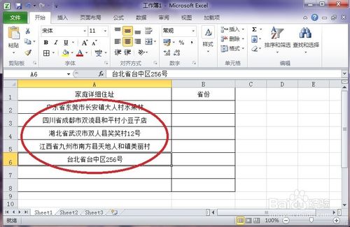 2、在表格中输入下图中的试例文字,这里是做例题的,地址纯属虚构,继续往下看。