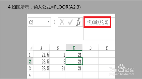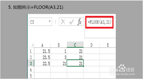 5. 如图所示=FLOOR(A3,21)