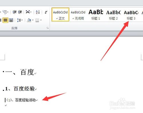 3、然后再把输入符放到三级标题上面,再用鼠标点击顶部索引框中的“标题3”。(如下图)