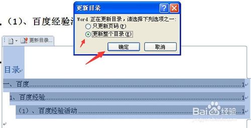 8、然后在弹出来的更新目录设置中,选择”更新整个目录“,然后点击”确定“按钮。(如下图)