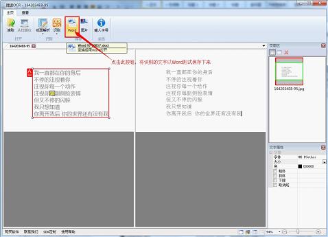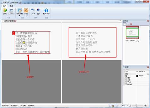 步骤四:点击“识别”按钮对选取的文件内容进行识别,软件界面右侧就会显示该内容所识别出来的文字。