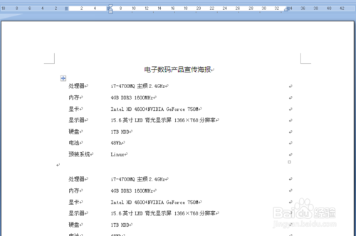 2、输入宣传产品的文字说明。上一步结束后,按enter键,换到下一行,这会插入点会在中间,按backspace键(退格)将插入点移动到当前行最左端,然后输入海报内容