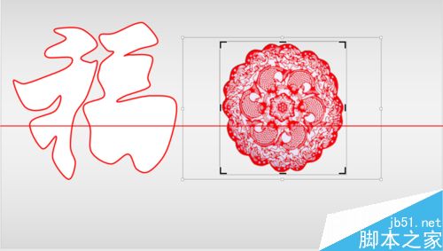 4、选中两部分形状,按Ctrl+G组合,并删去原有的“福”字。