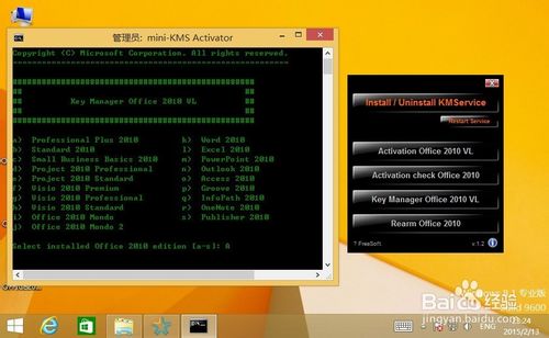 2、点击“Key Manager Office 2010 VL”按钮,弹出来的框中输入“a”等待自动操作,直到显示“Press any key to exit”,即可关闭窗口;