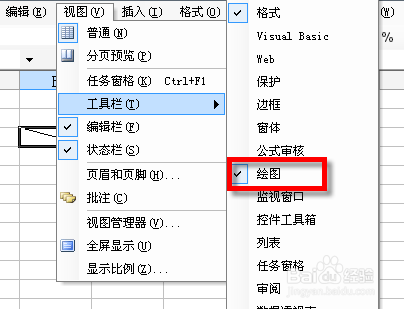 依次打开菜单栏“视图”-“工具栏”,找到“绘图”,将其勾选,打开绘图工具栏。