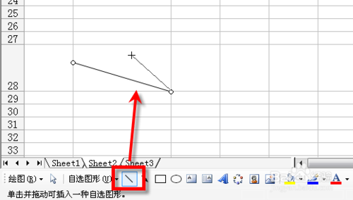 2、在“绘图”工具栏上选择“直线”工具,在单元格中绘制出两条或多条直线。