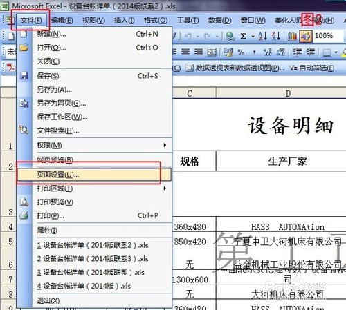 在Excel表格中,选择文件----页面设置,如图2所示。