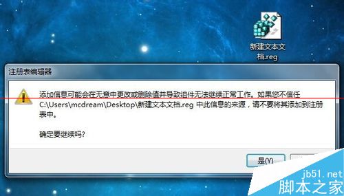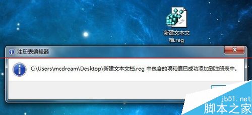 5、双击导入该注册表文件,导入成功后会有提示信息,如图所示: