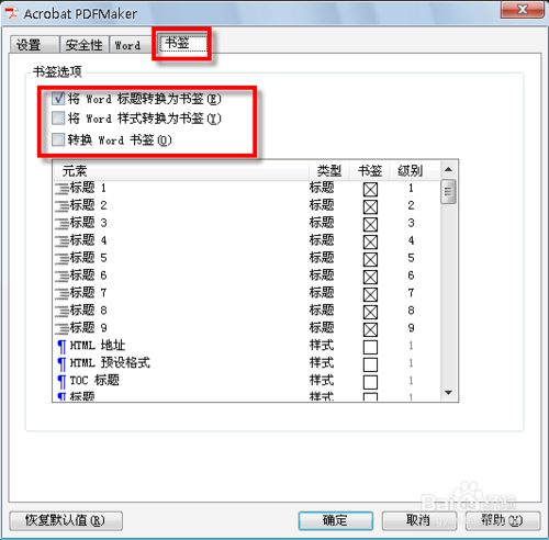 3、如果文档比较复杂,有目录等,生成的pdf需要做书签时,可以点击“首选项”,进行设置。